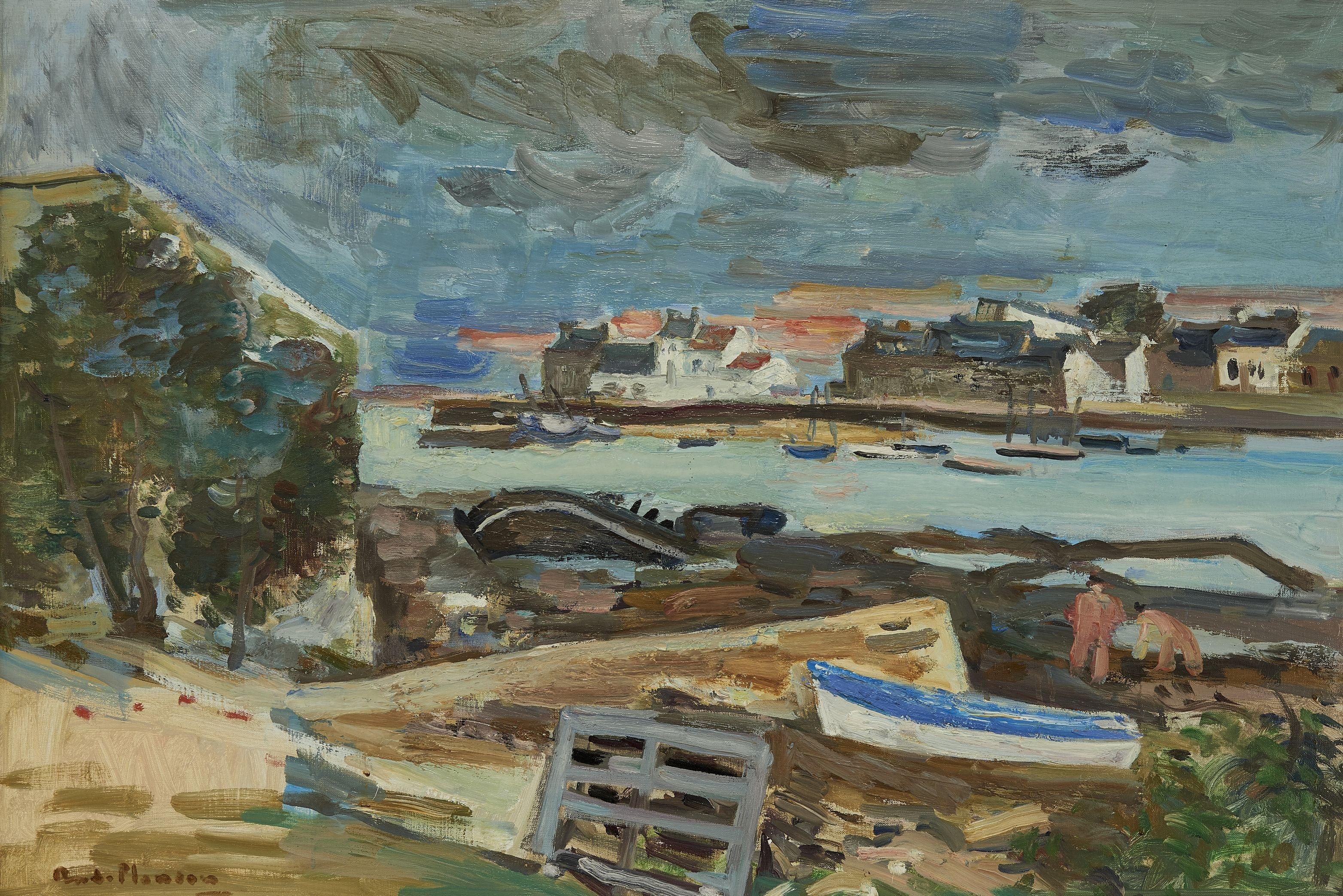 Port de pêche, huile sur toile, signée, 53x80 cm