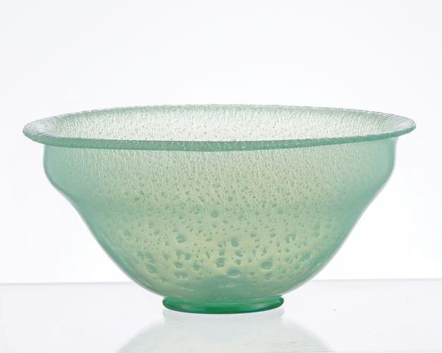 Coupe tronconique, verre jaune bullé, signée Serica Copier, édit...