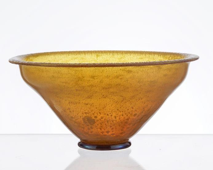 Coupe tronconique, verre bleu turquoise bullé, signée Serica Cop...