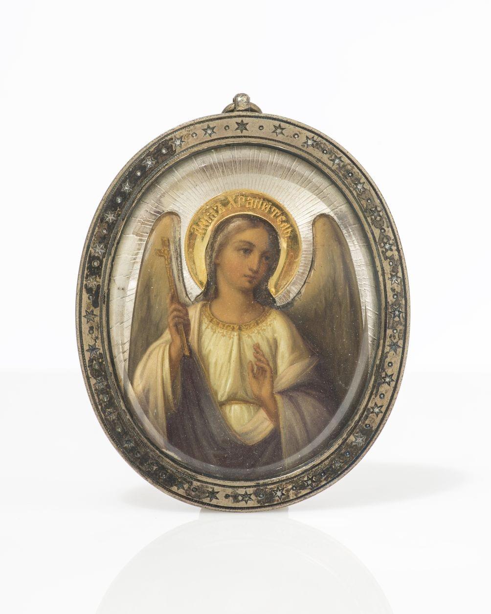 Mère de Dieu de Tichwin, icône sous verre recto verso, l'un des...