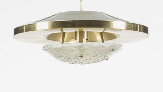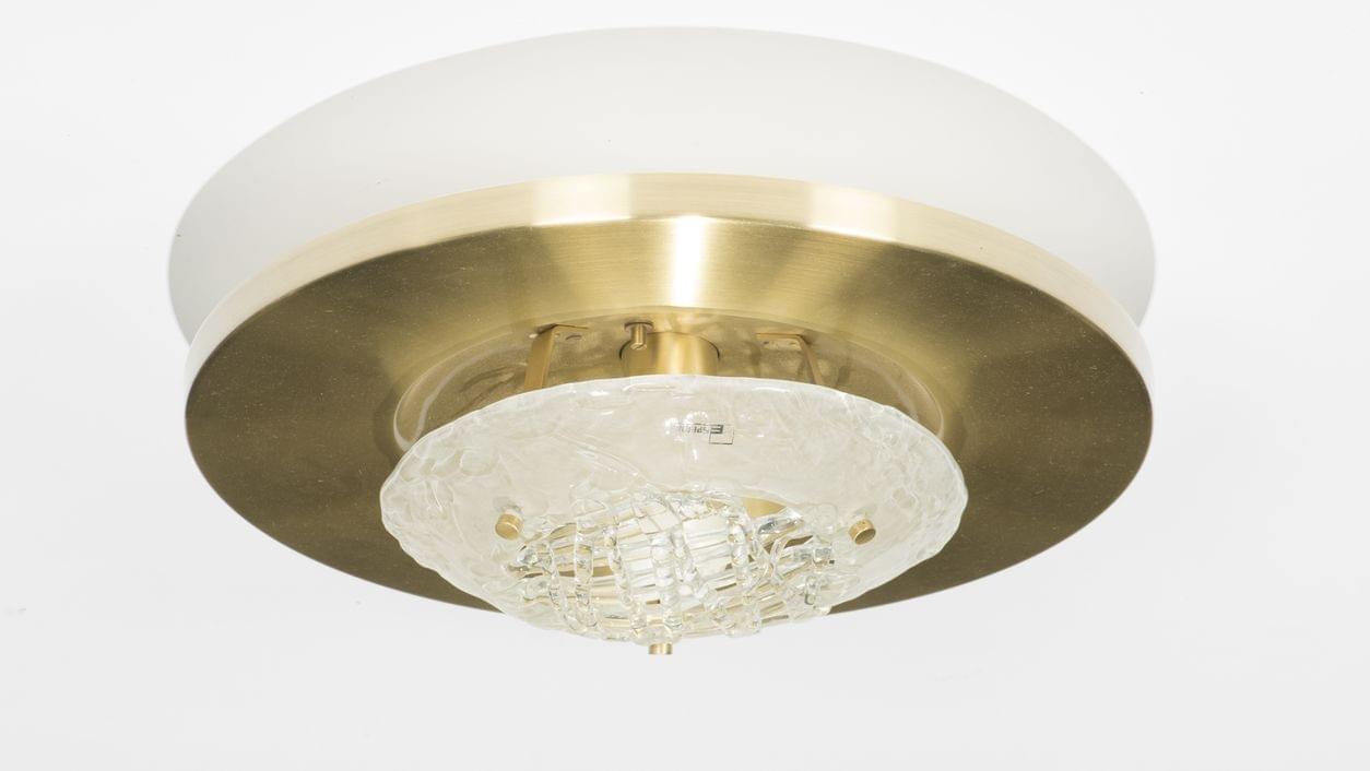 Applique/Plafonnier, métal doré et verre de murano, Italie, édition Esperia, circa 1970, D 50 cm