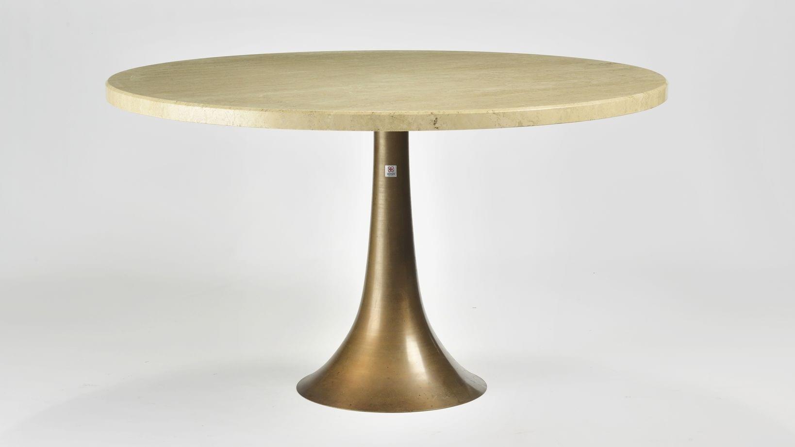 Table de salle à manger (modèle créé en 1959), bronze et marbre, ed. Bernini, sticker de l'éditeur, 73x130 cm