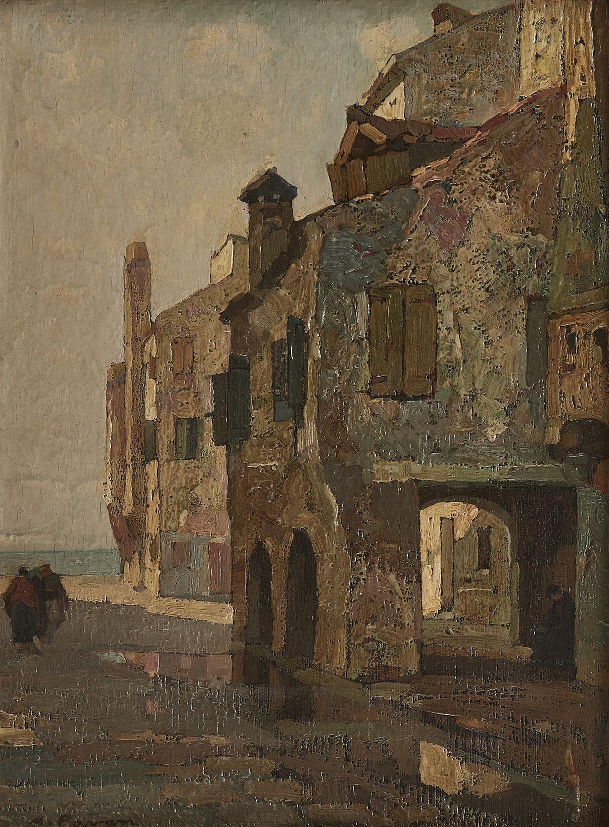 Vue d'une campo à Venise, huile sur panneau, signée, 28x28 cm
