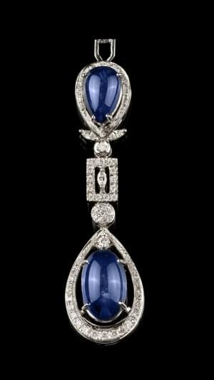 764. Pendentif long serti de deux saphirs taille cabochon (env. 13 ct...