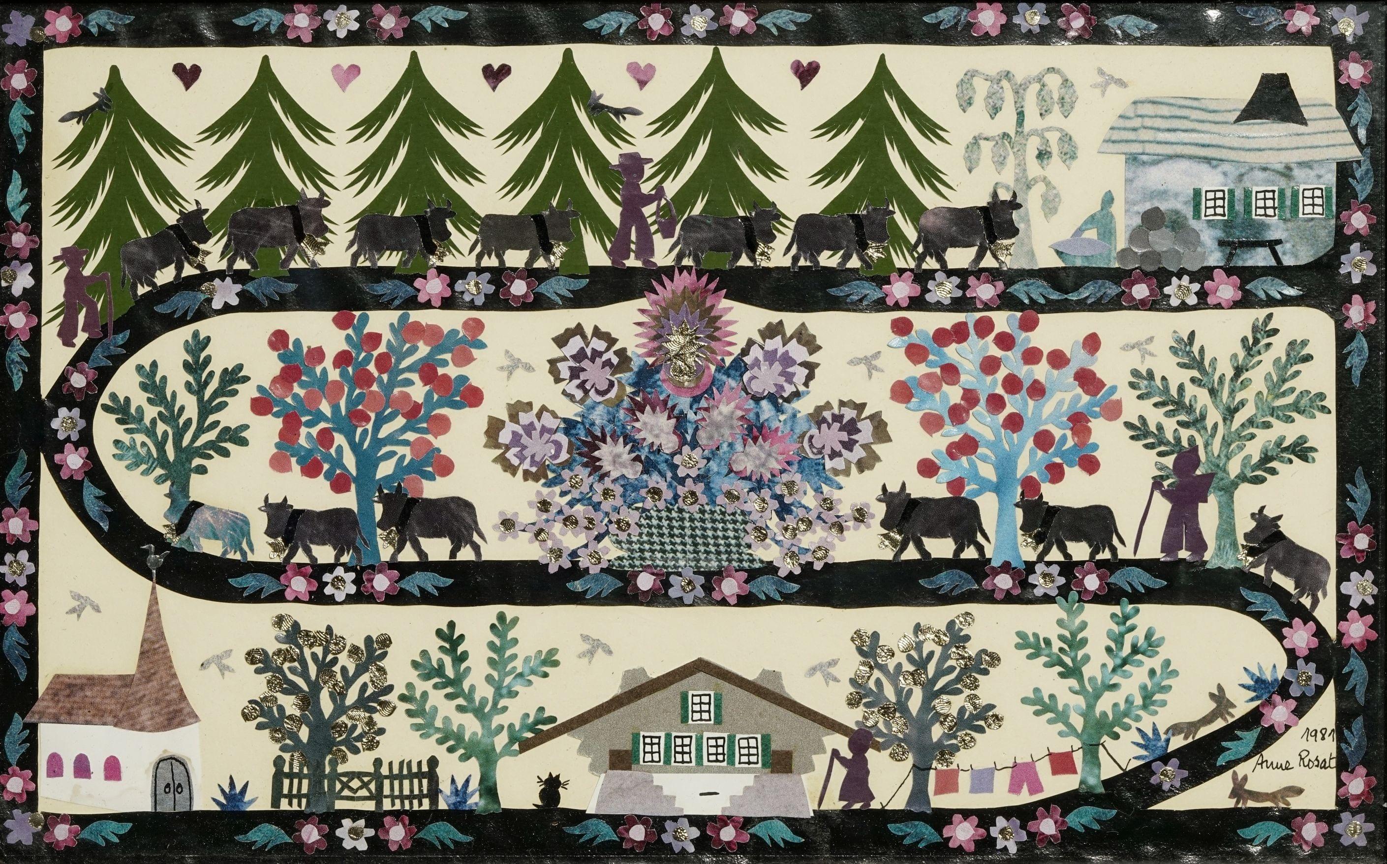 Découpage à motif d'un bouquet de fleurs, signé et daté 1991, 16...