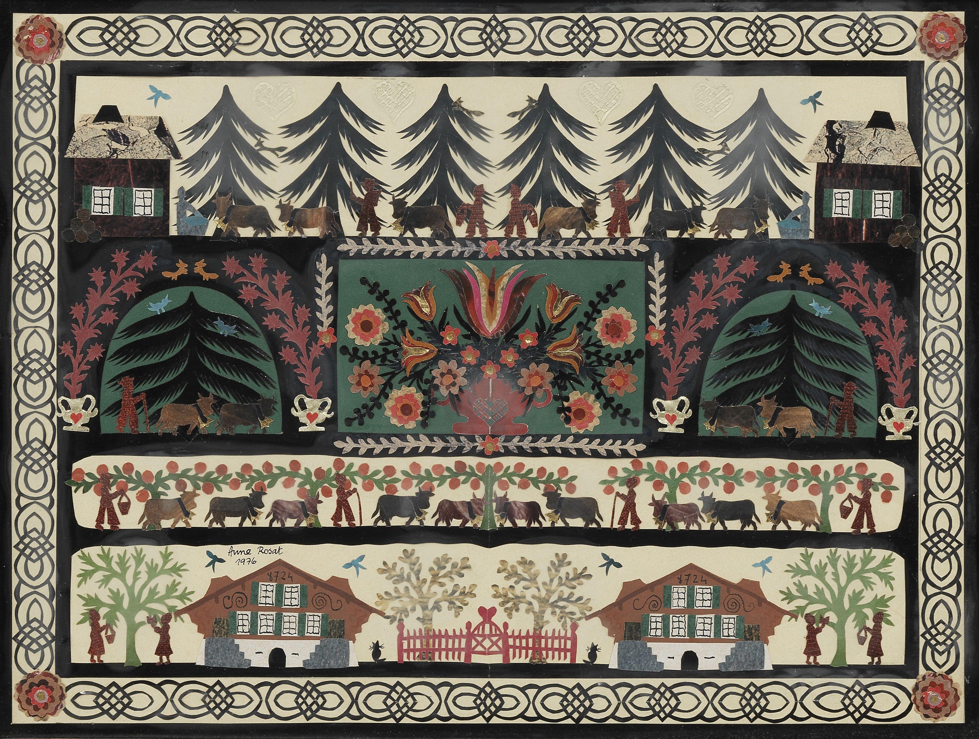Découpage, fleurs, signé et daté 1977, 23,5x23,5 cm