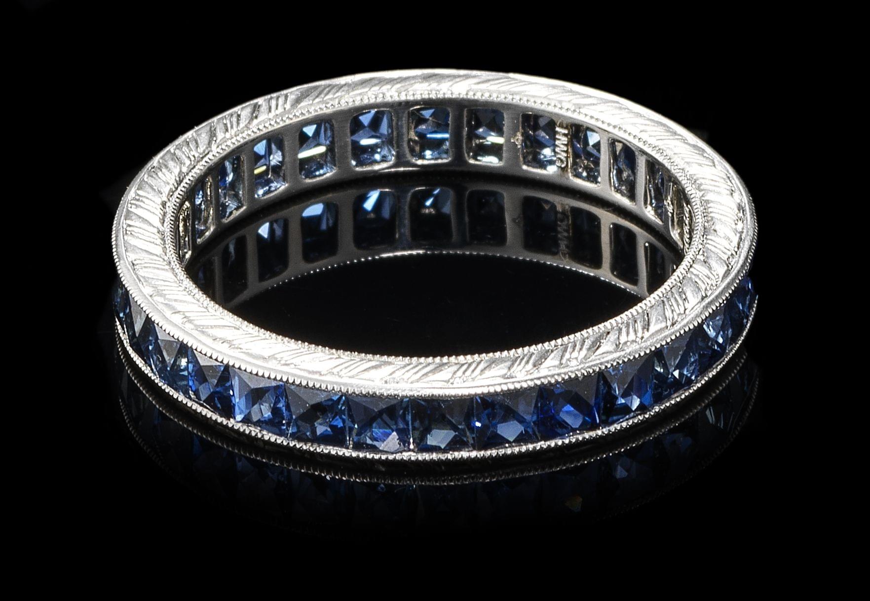214. Bague sertie d'un saphir Ceylan non chauffé taille coussin ovale...