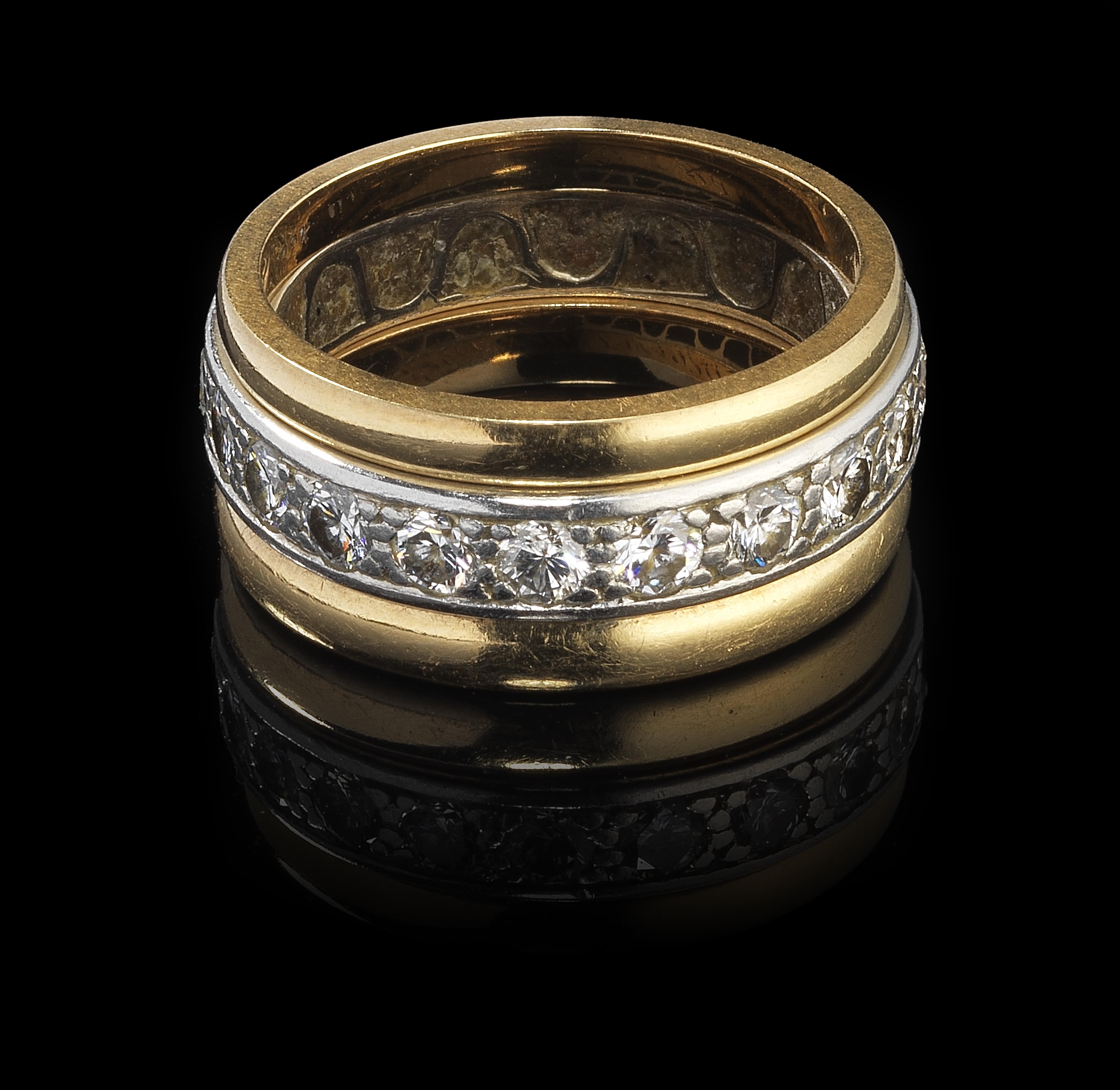64. *Chaîne à maille boule retenant un pendentif ajouré pavé de diam...
