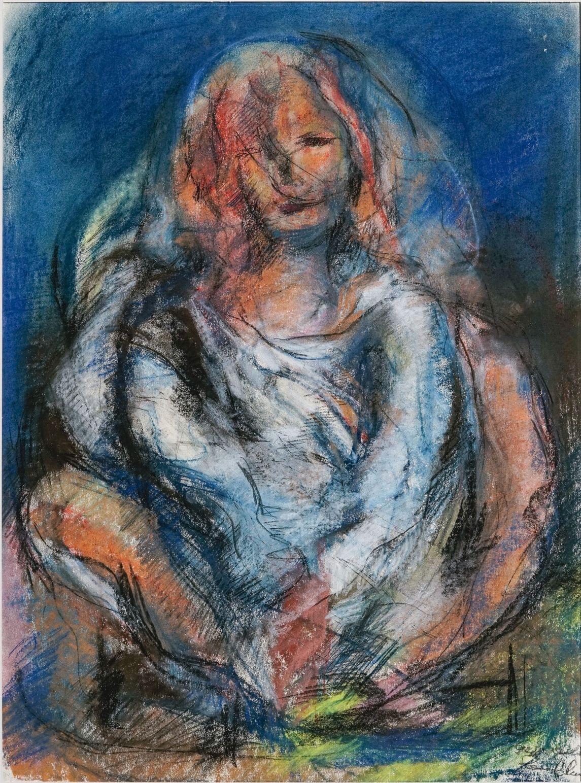 Jeune fille, crayon gras sur papier signé et daté Yves Paul 95, 55 x 41 cm
