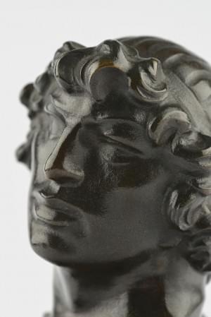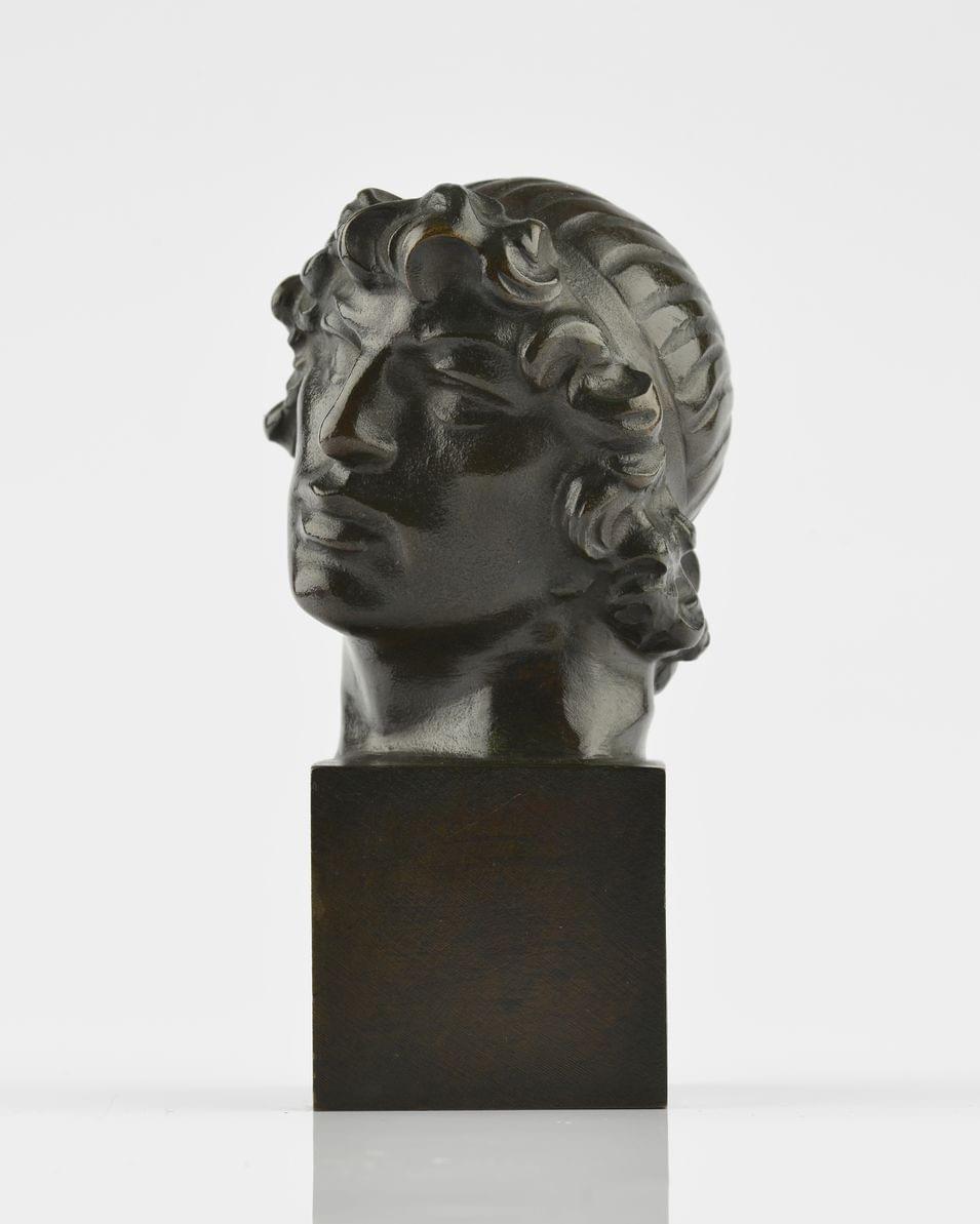 Buste de jeune homme à l'antique, bronze à patine médaille, monogrammé JB, H 13 cm