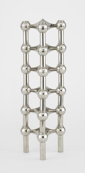 Bougeoir composé de six éléments modulables, métal argenté, H 10...