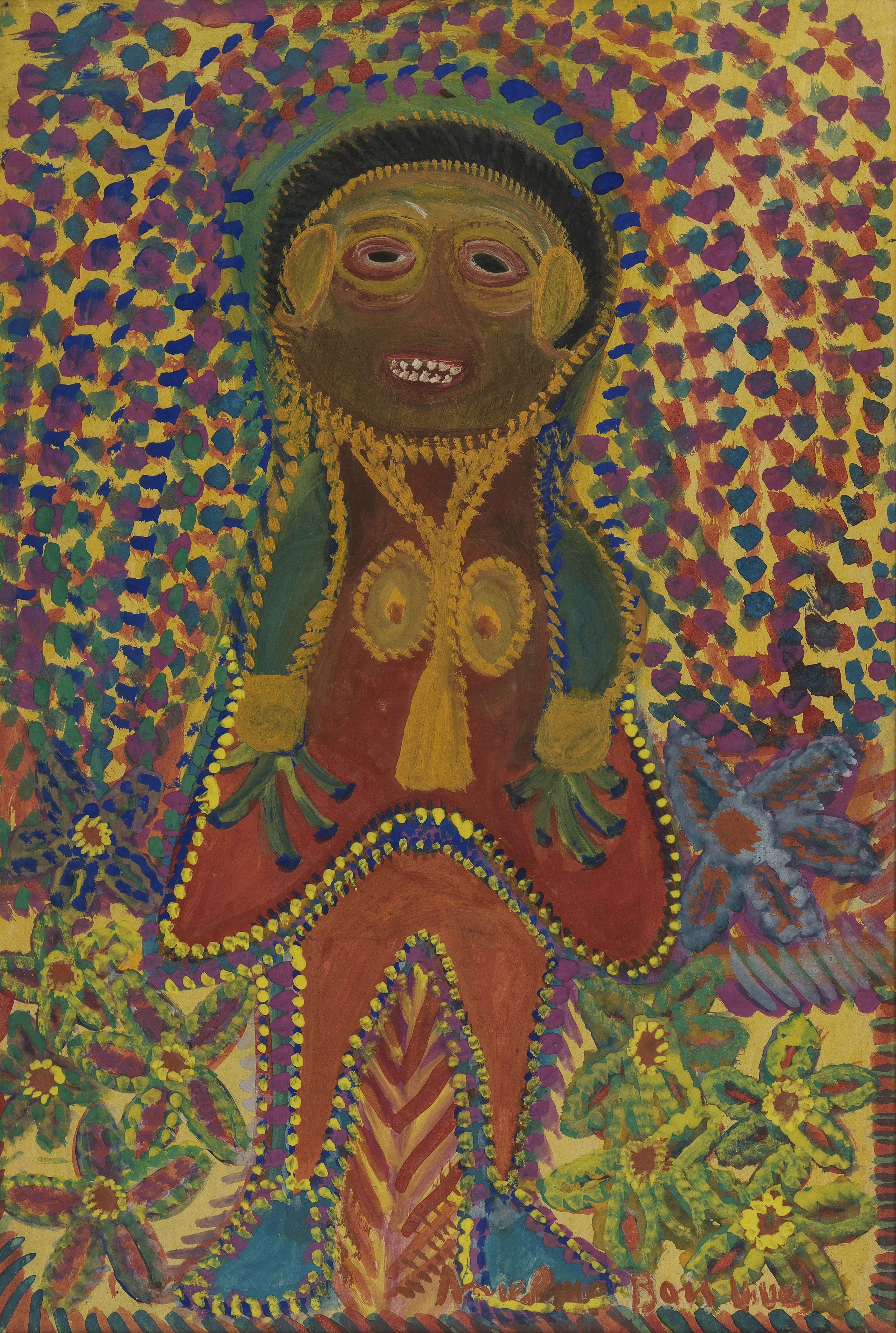 Personnage orange, gouache sur carton, signée, 70x47 cm