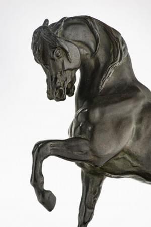 Cheval turc n°2 antérieur gauche levé (terrasse carrée), bronze à patine vert foncé, signé et marqué F. Barbedienne Fondeur Paris, 29x31x12 cm