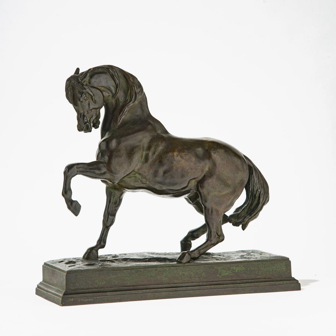 Cheval turc n°2 antérieur gauche levé (terrasse carrée), bronze à patine vert foncé, signé et marqué F. Barbedienne Fondeur Paris, 29x31x12 cm