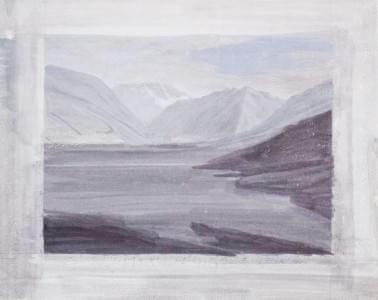 A la tombée de la nuit, gouache sur papier, 25x32 cm