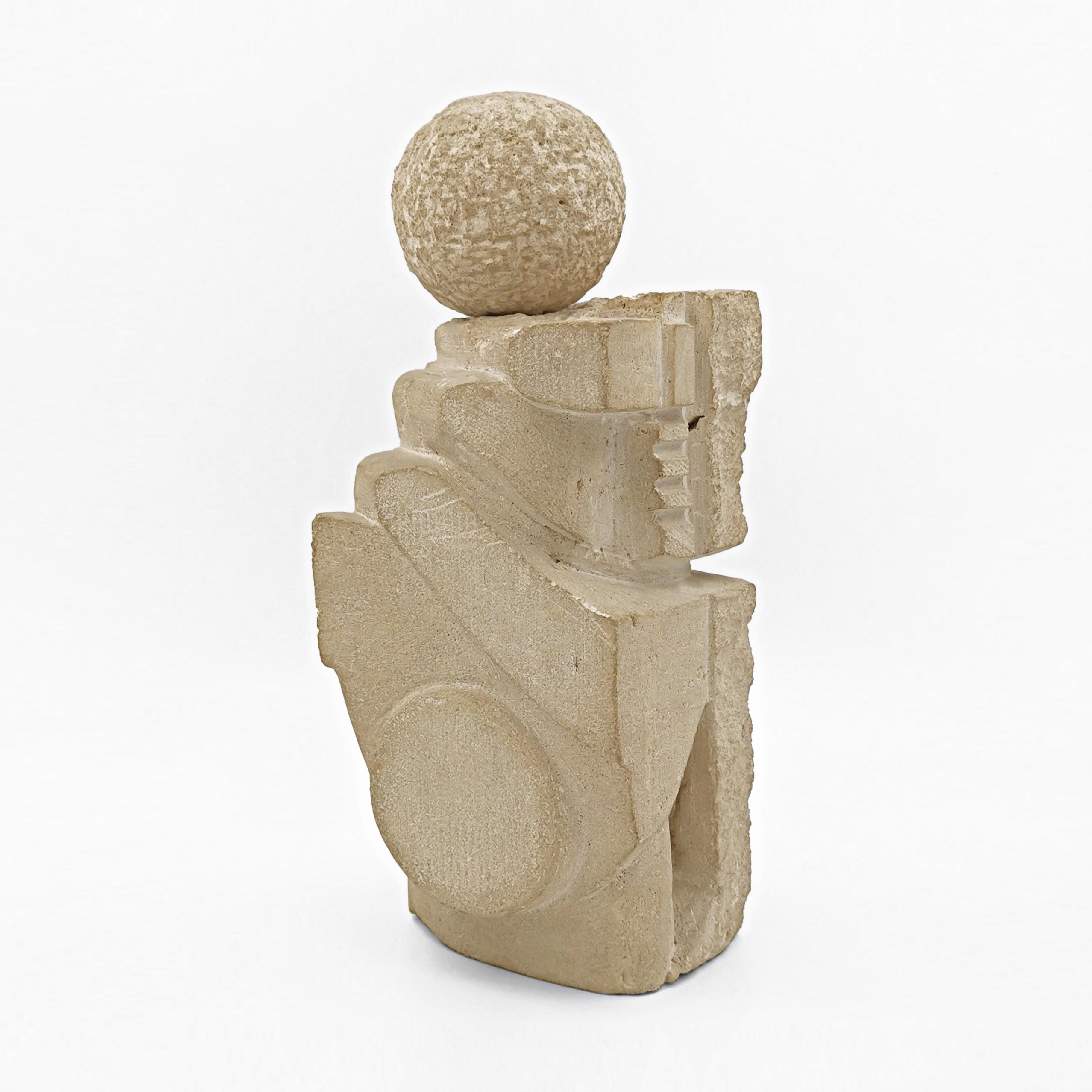 Sculpture abstraite, pierre sculptée, signée et datée 1983, H 33 cm