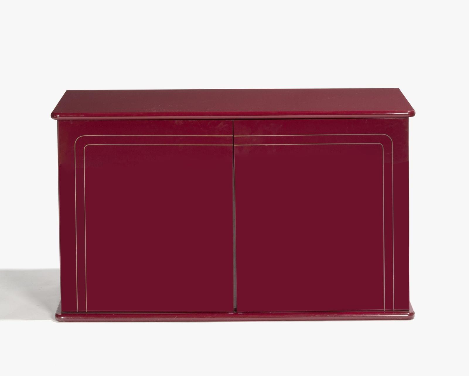 Buffet à deux vantaux, bois laqué bordeaux, incrustation de filets de laiton, 74x125x49 cm
