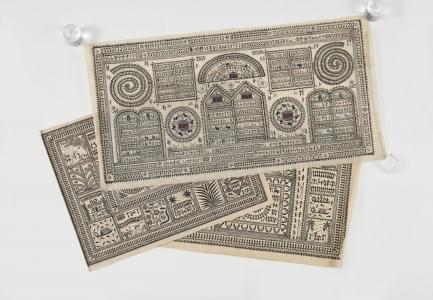 Trois peintures sur soie, 60x112 et 60x75 cm