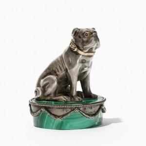 350. Broche à motif de chien sertie de saphirs pour les yeux et d'un...