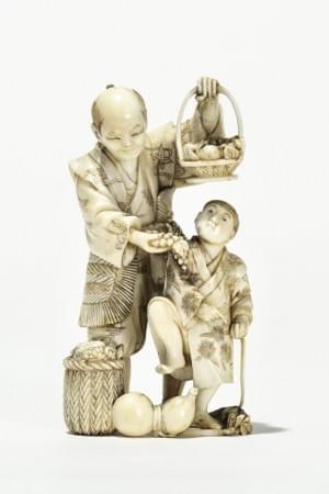 88. Okimono figurant un homme avec fruits et enfants, Japon, circa 1...