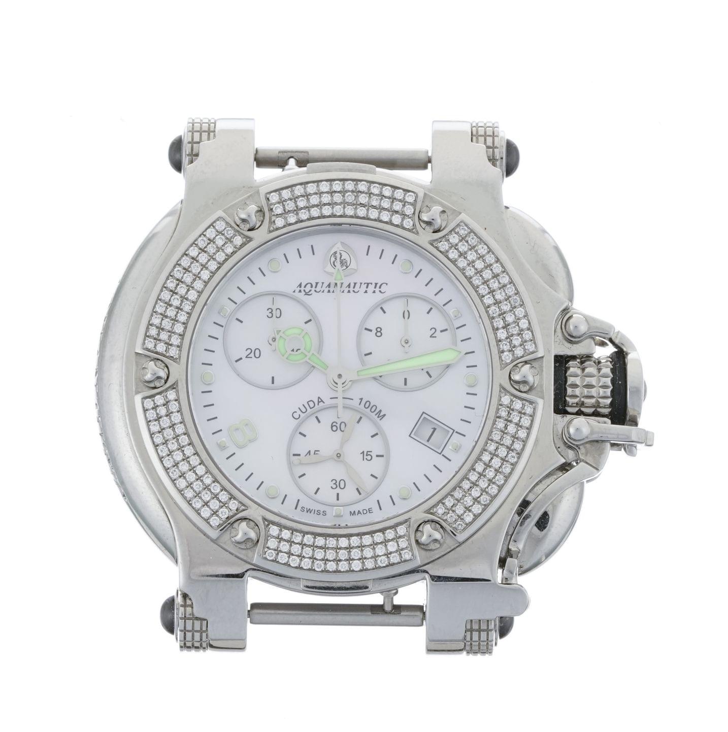 3055. Aquanautic Cuda, montre ronde chronographe à quartz sans bracelet sertie de diamants