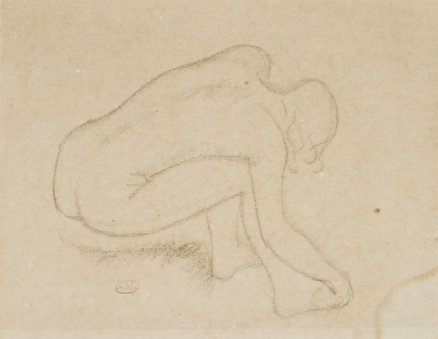 Nu féminin de dos, lithographie façon sanguine sur papier, 27x18...