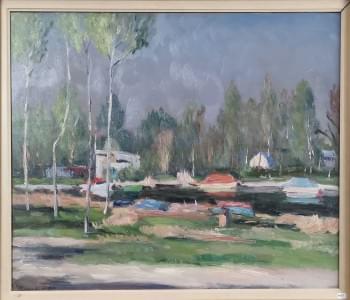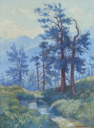 Les arolles dans la forêt d'Aletsch, huile sur toile, signée et...