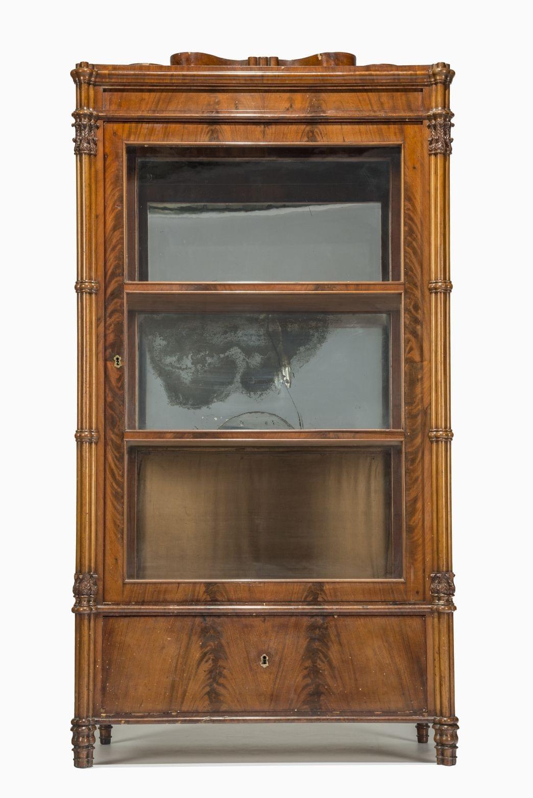 Montants en colonnes baguées, les trois côtés vitrés, fond de glace, 170x94x46 cm