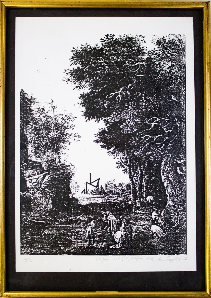 Monastère, huile sur toile marouflée sur panneau, signée, 39x49,...