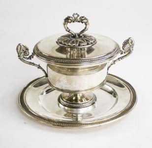 3347. Drageoir néoclassique à anses col de cygne et assiette