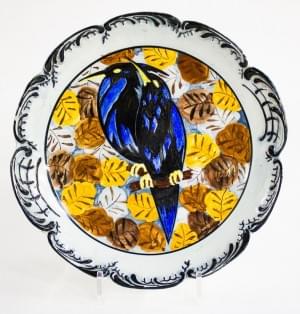 Porcelaine émaillée blanc bleu à décor de végétaux et d'oiseaux,...
