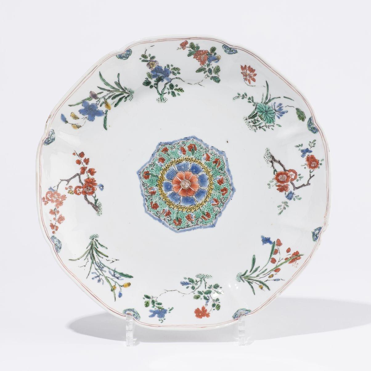 Porcelaine émaillée blanc bleu à décor de fleurs, Chine, XVIIIe...