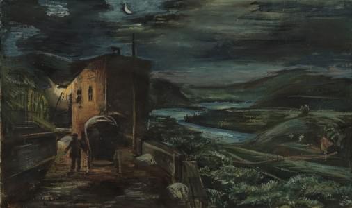 Scène au clair de lune, huile sur toile, 41x68 cm