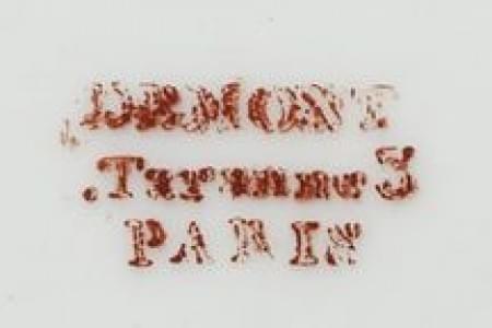 Demont rue Taranne 3, porcelaine, D 23,5 cm. Assiette réalisée pour le mariage de Guillaume Boudin de Tromelin (1798-1875), militaire et homme politique français, châtelain de Coatserho, et de Mathilde Devin de Belleville en 1833