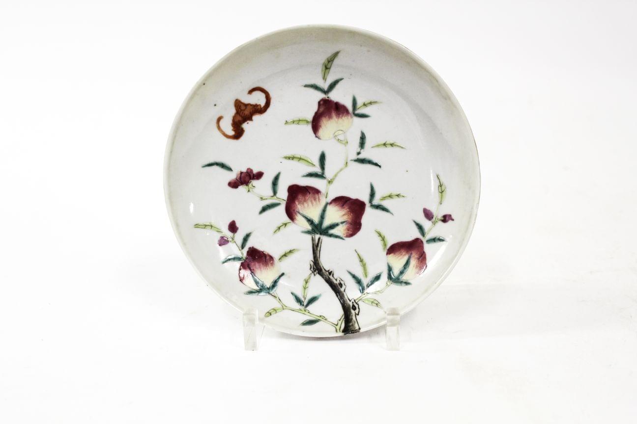Porcelaine à décor des cinq pêches, marque Qianlong apocryphe, D 16,5 cm