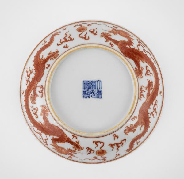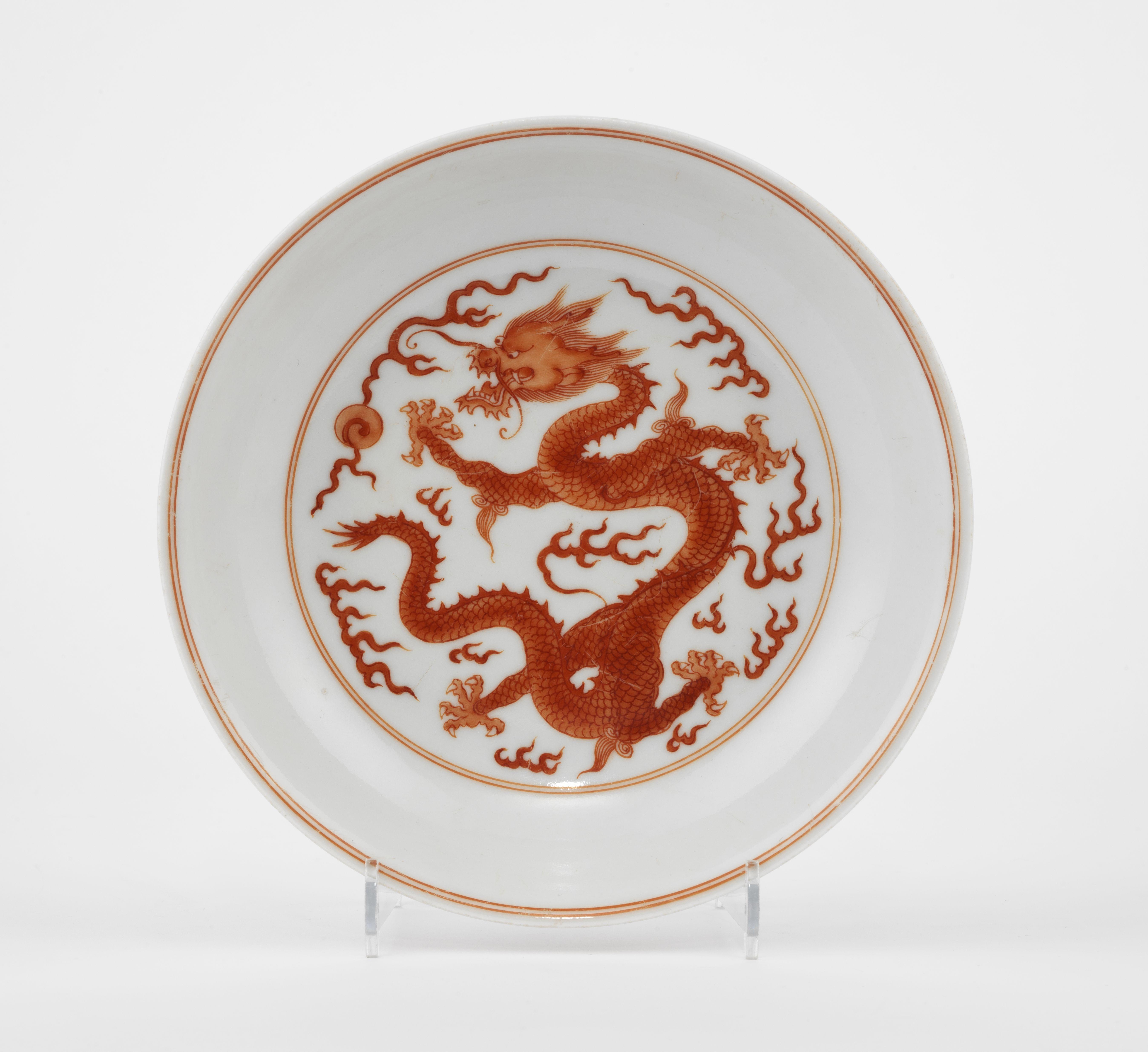 Porcelaine émaillée rouge de fer à motif d'un dragon, D 17 cm