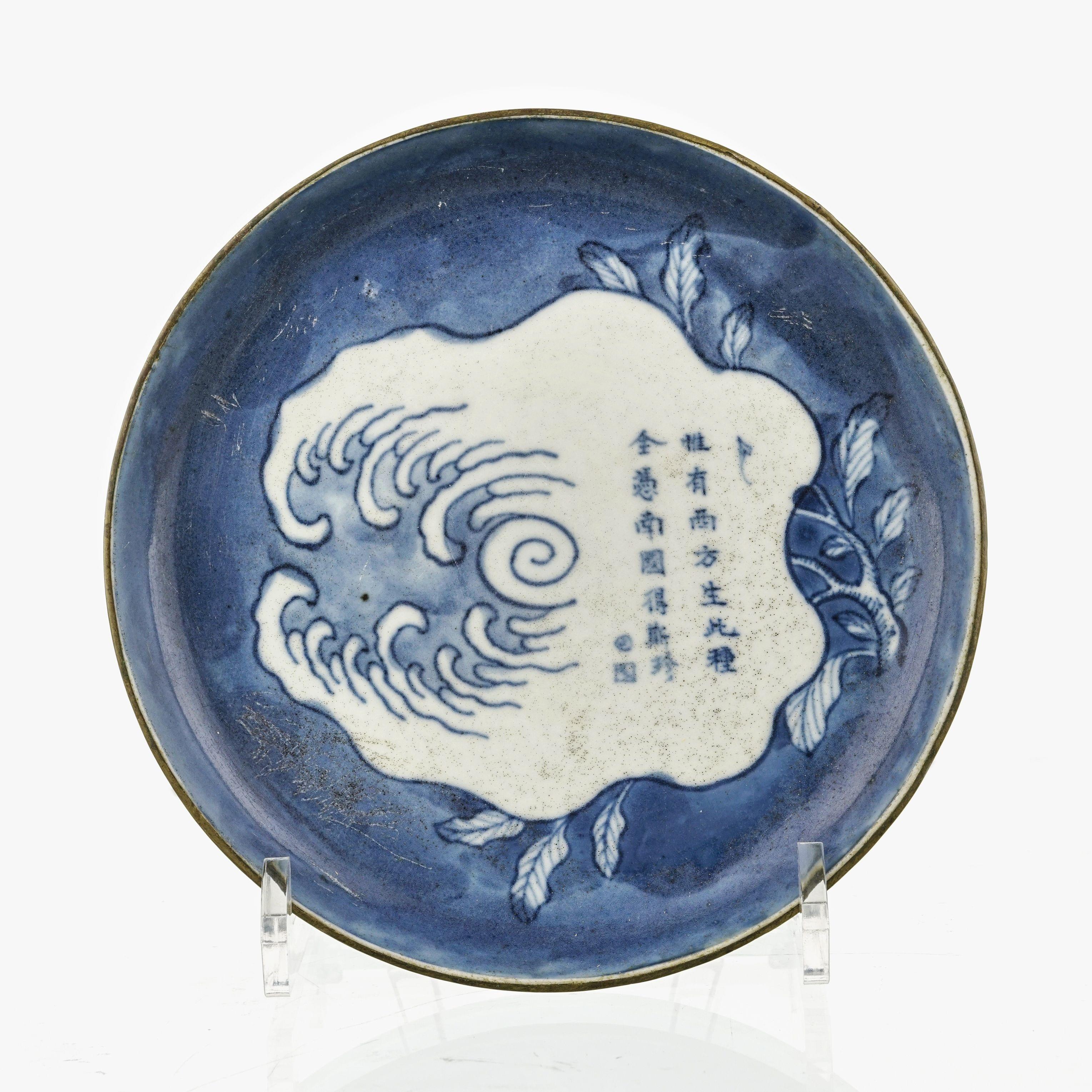 Porcelaine émaillée à décor d'une main de bouddha calligraphiée, D 15 cm