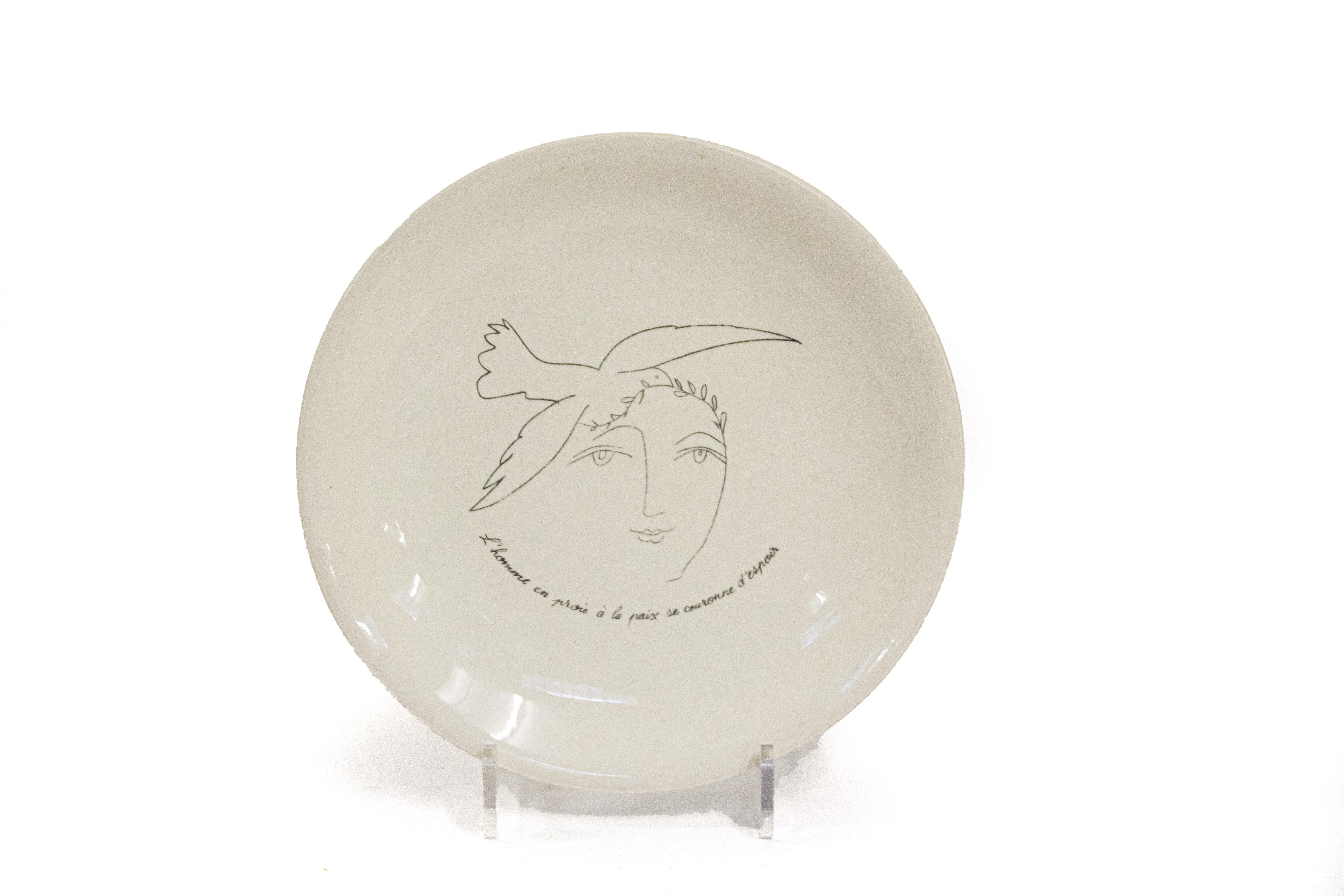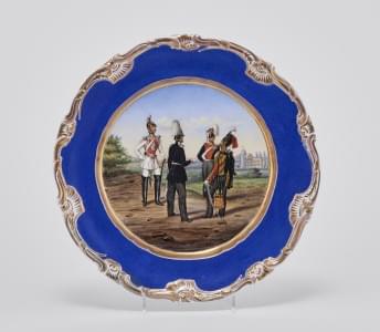 514. Assiette à décor de scène militaire présentant quatre officiers...