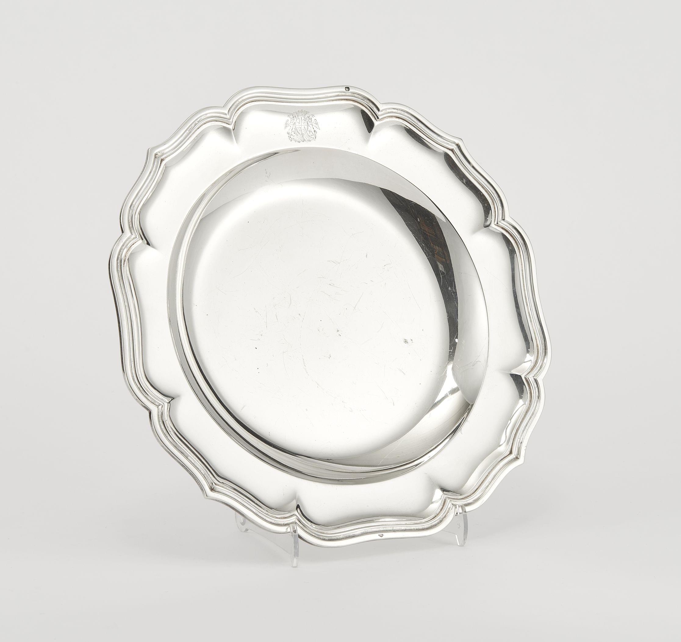 367. Ensemble d'une théière piriforme festonnée et un plateau de serv...