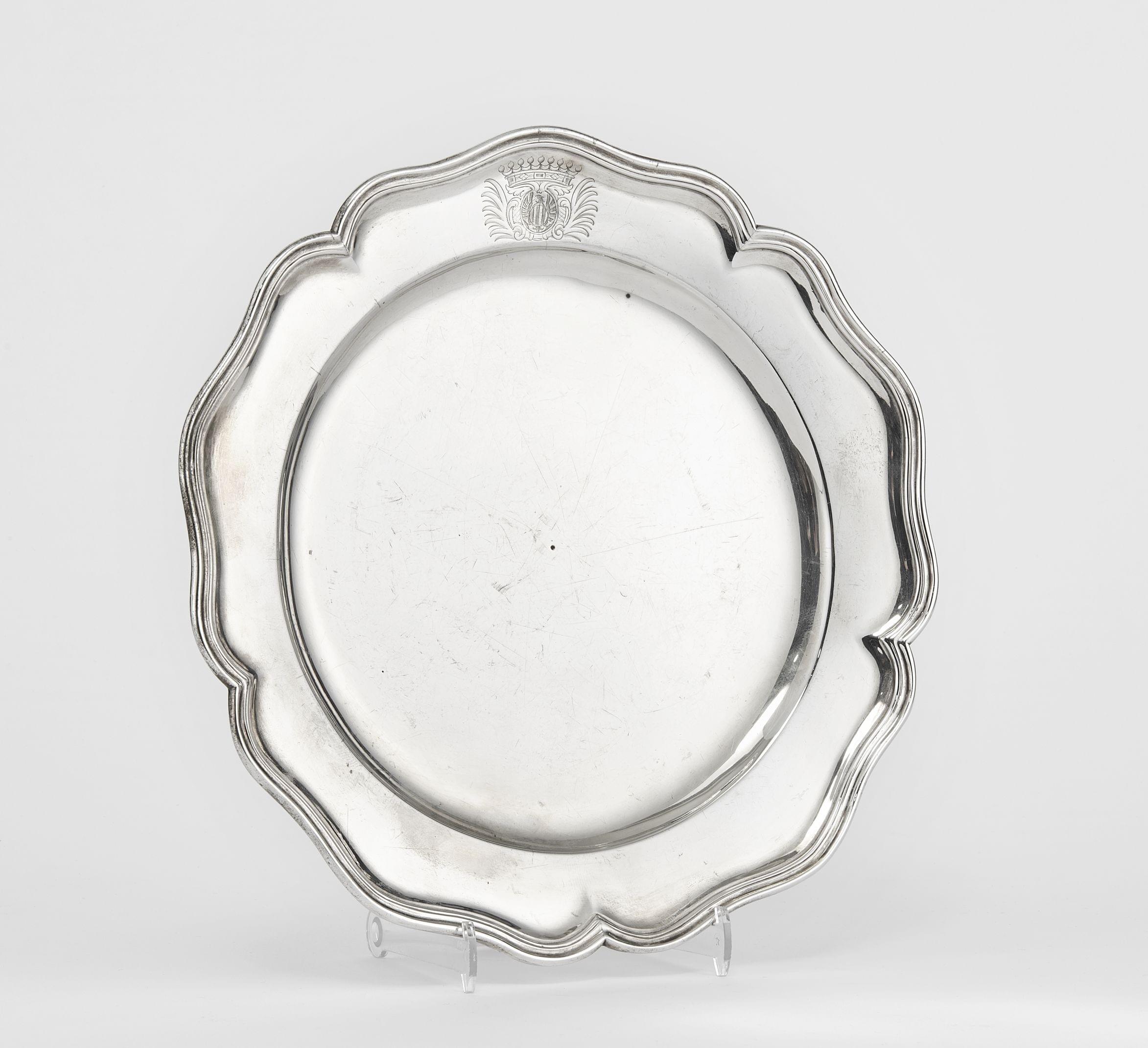 Porcelaine blanc bleu à motifs dans des réserves, D 21 cm