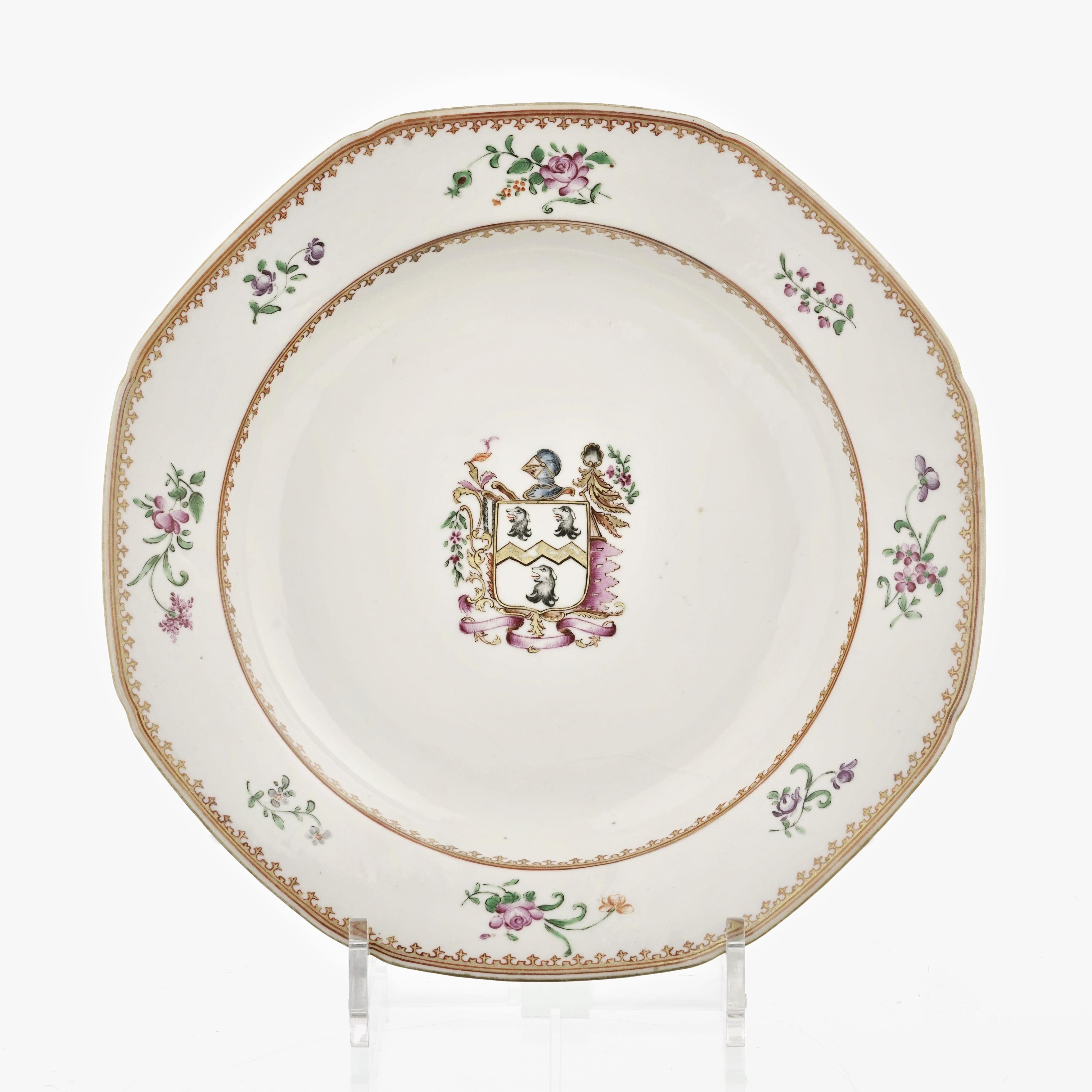 227. Assiette octogonale, Chine, Compagnie des Indes, XVIIIe s