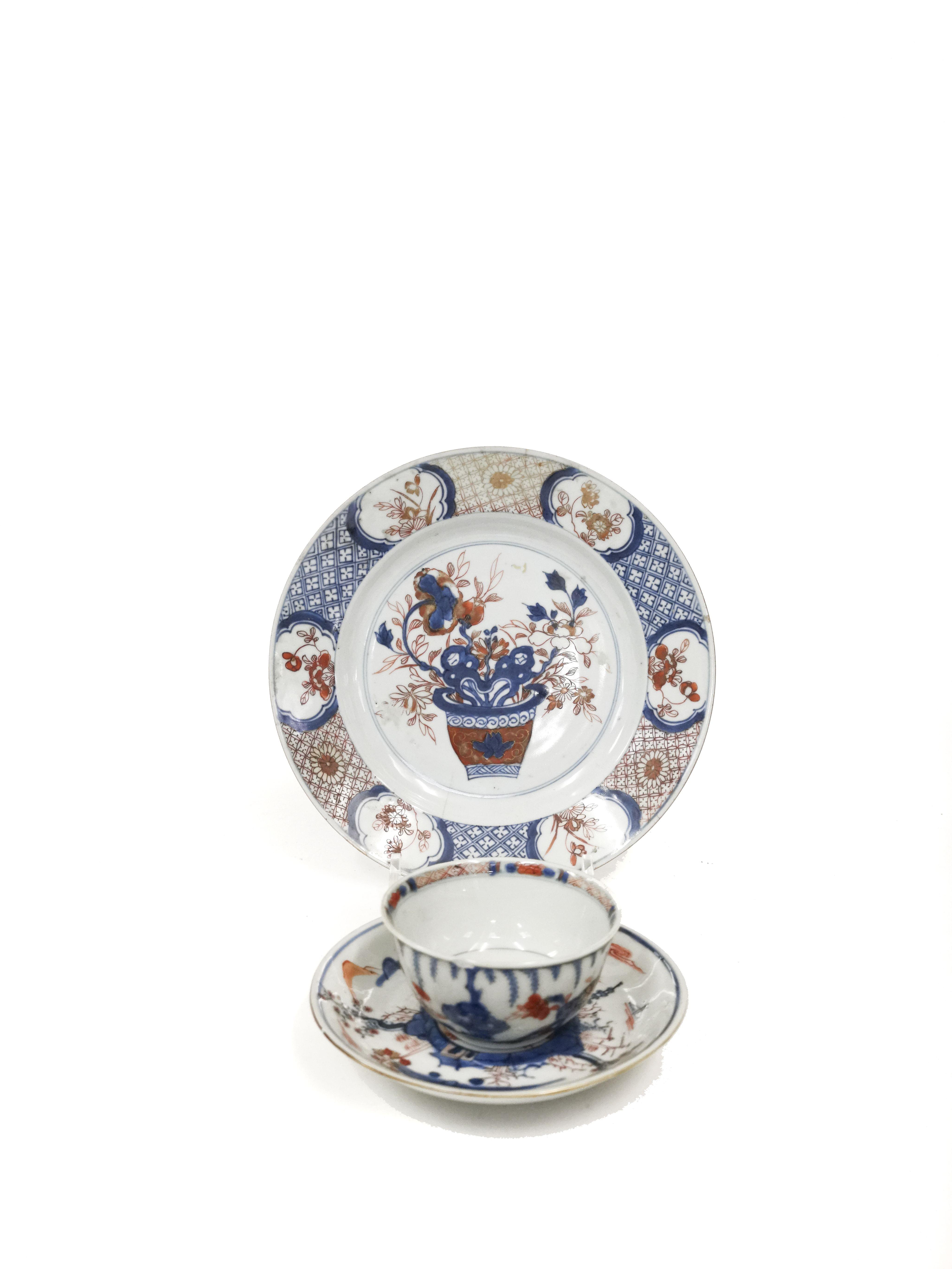 3441. Assiette, tasse et sous-tasse Imari, Chine, dynastie Qing (1644-1912)