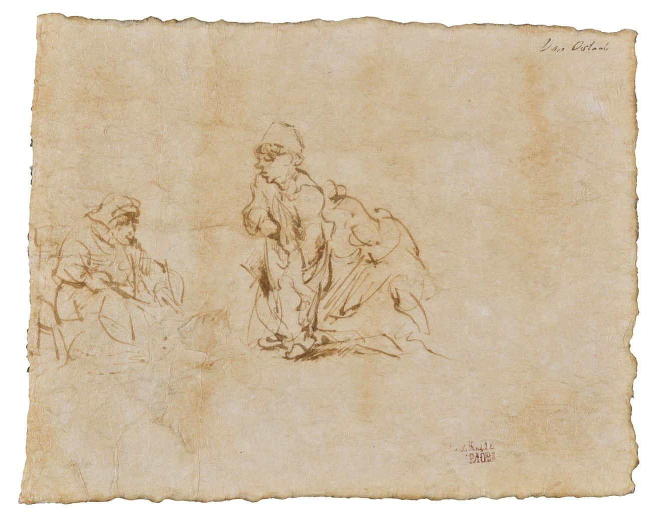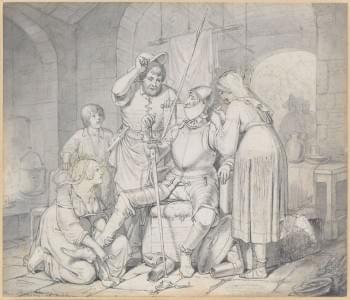 Le retour du croisé, mine de plomb et lavis d'encre, signé et da...