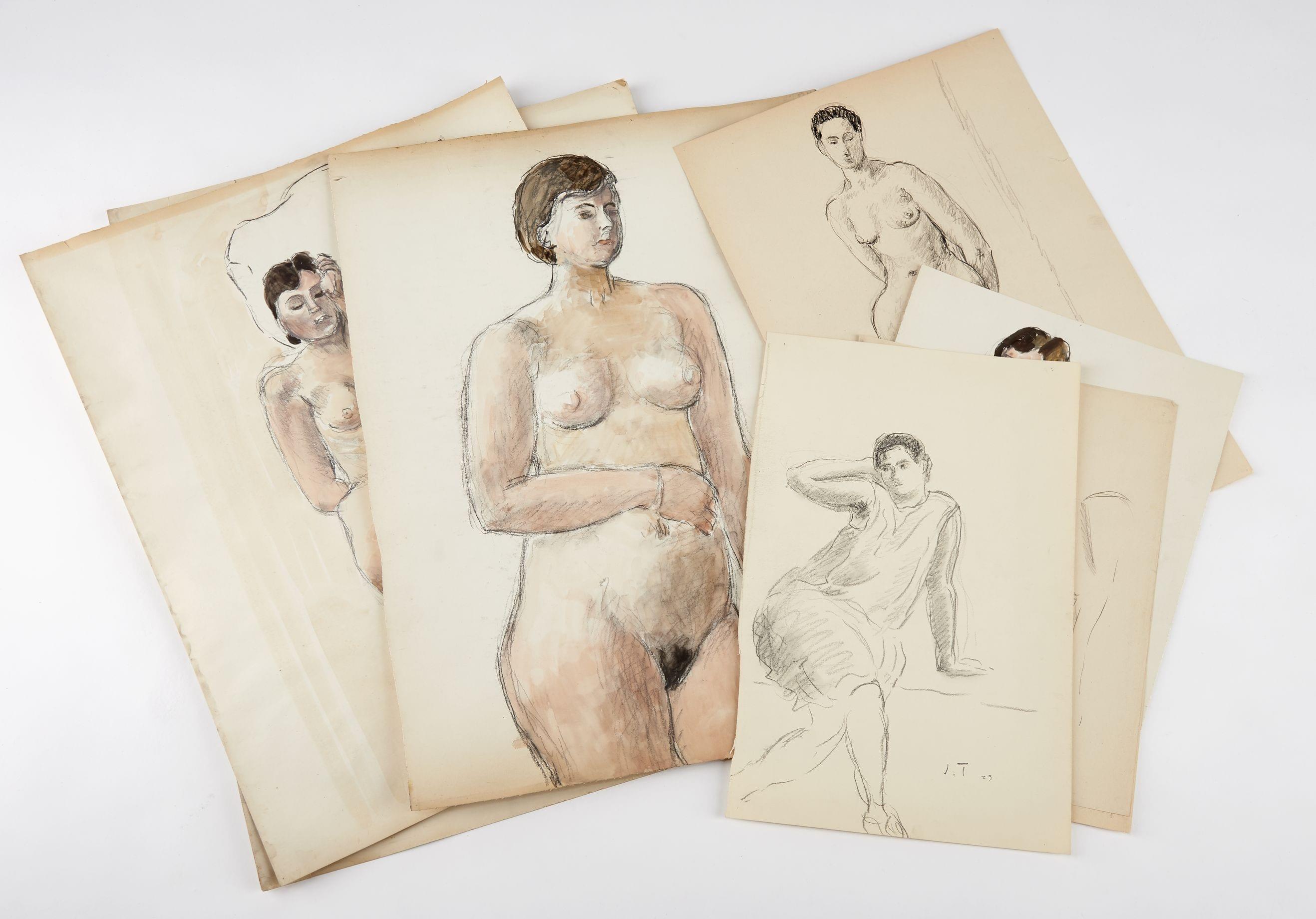 Ensemble de croquis, études et dessins de nus féminins, dim. Diverses