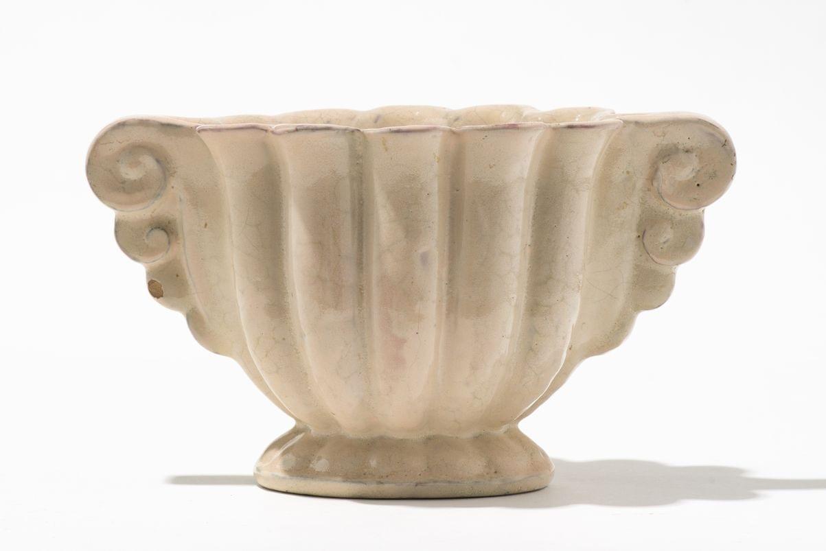 Vase ovale à anses en enroulement, céramique émaillée beige, H 1...