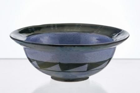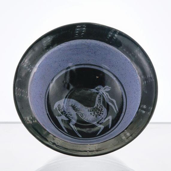 Bol à décor d'une antilope, céramique émaillée violet, signé sous la base, D 19 cm