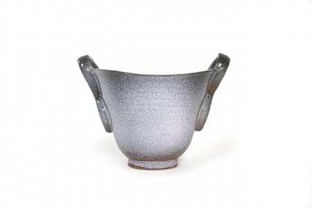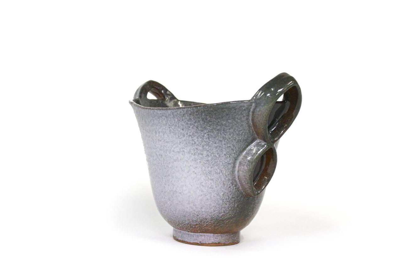 Vase à anses, céramique émaillée gris, signé sous la base, H 15 cm