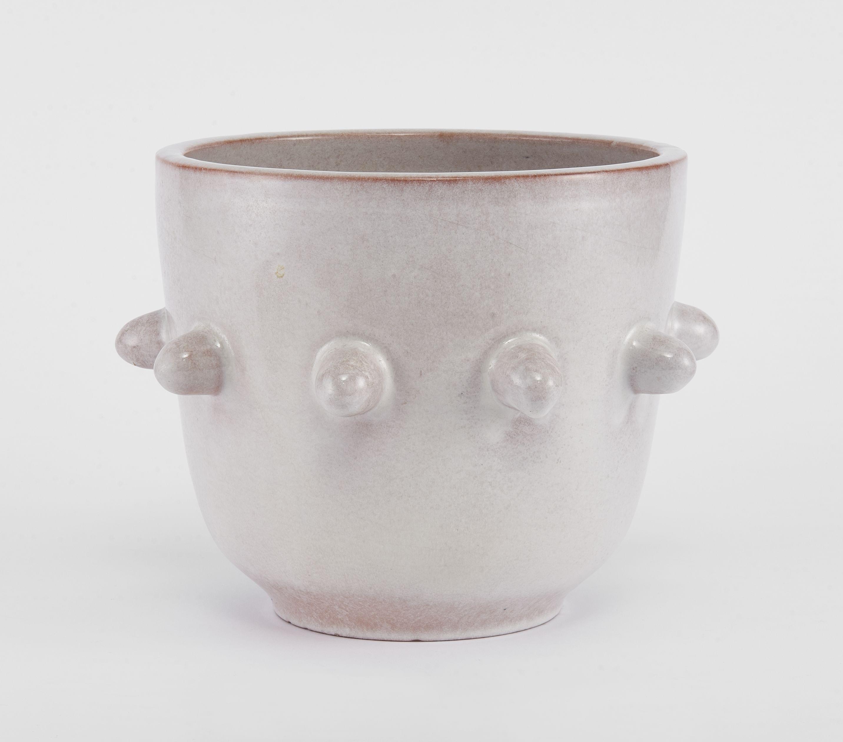 Cache-pot, céramique émaillée beige à motifs protubérants, 19x21,5 cm