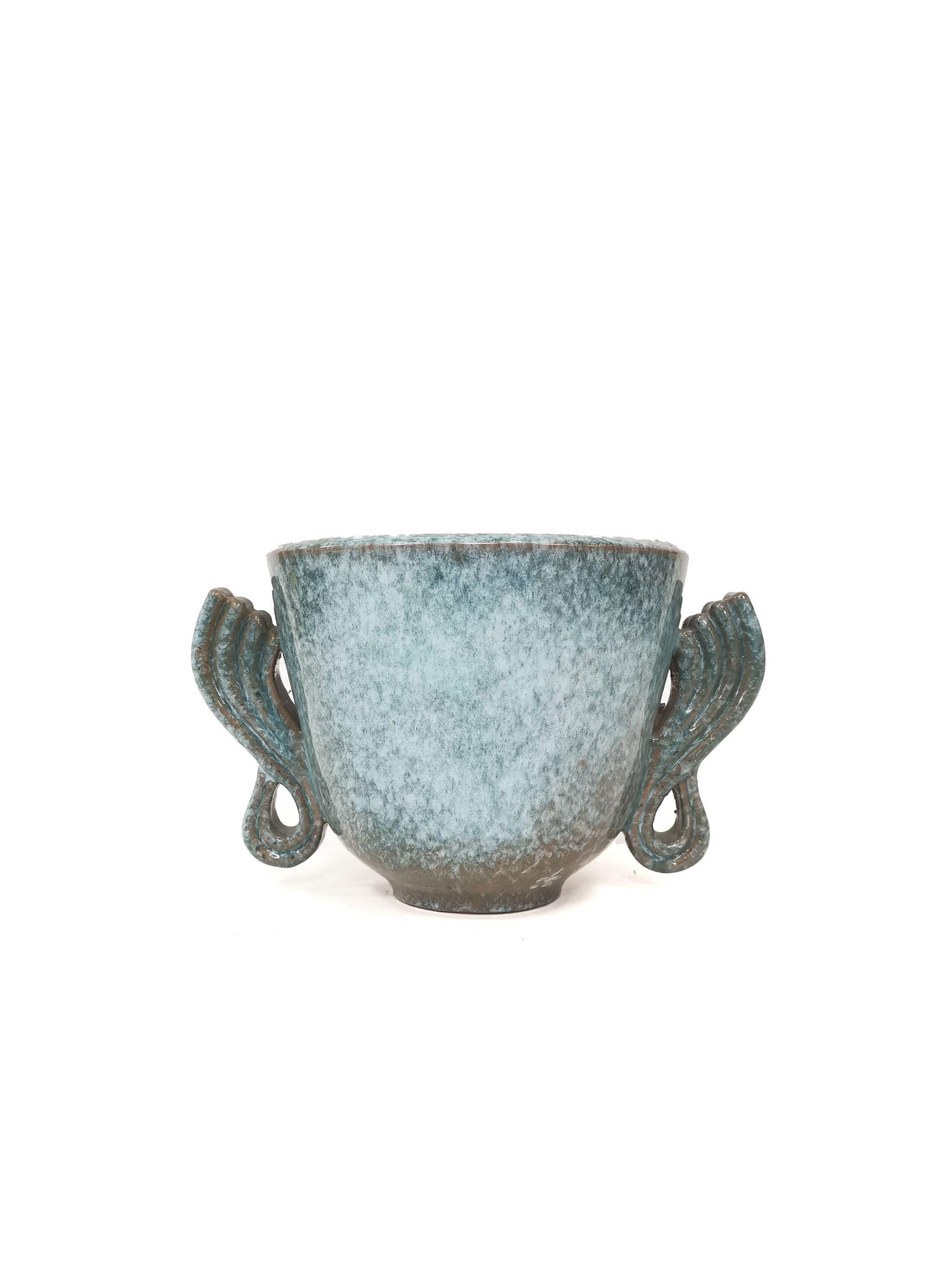 Vase à anses, glaçure mouchetée turquoise, D 21 cm