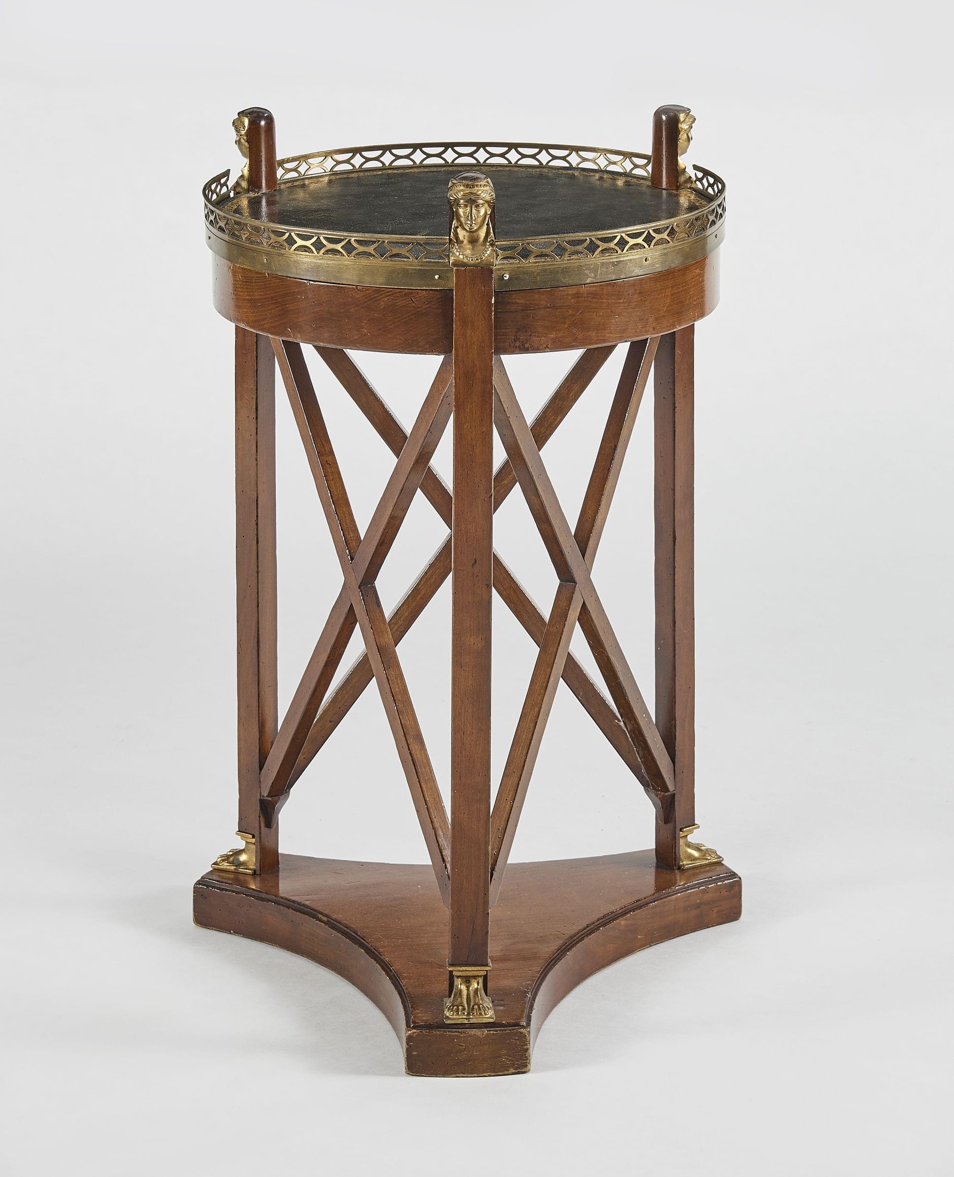 Montants à décor de têtes de femme, acajou, bronze doré et cuir, 67x37 cm. Provenance: collection Pernet-Villaverde